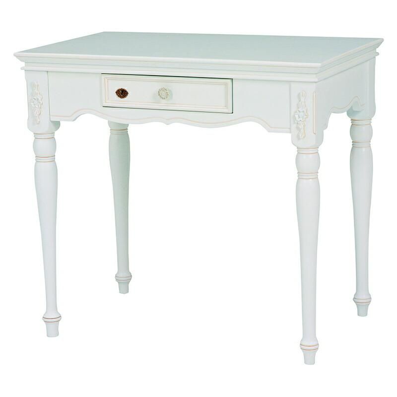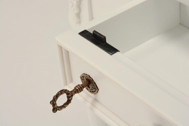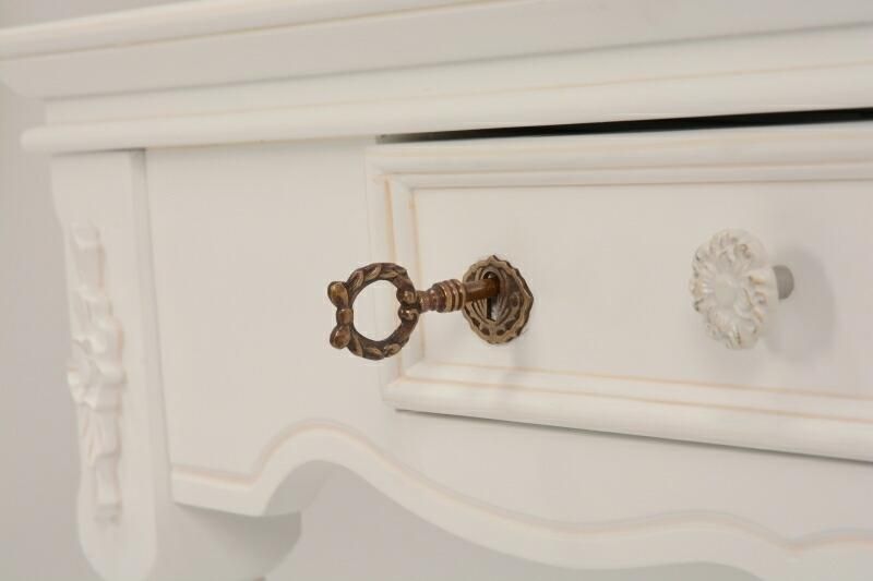 商品説明 エレガントな彫刻が施された引出しつきアンティーク風テーブル。引き出しは鍵付き。