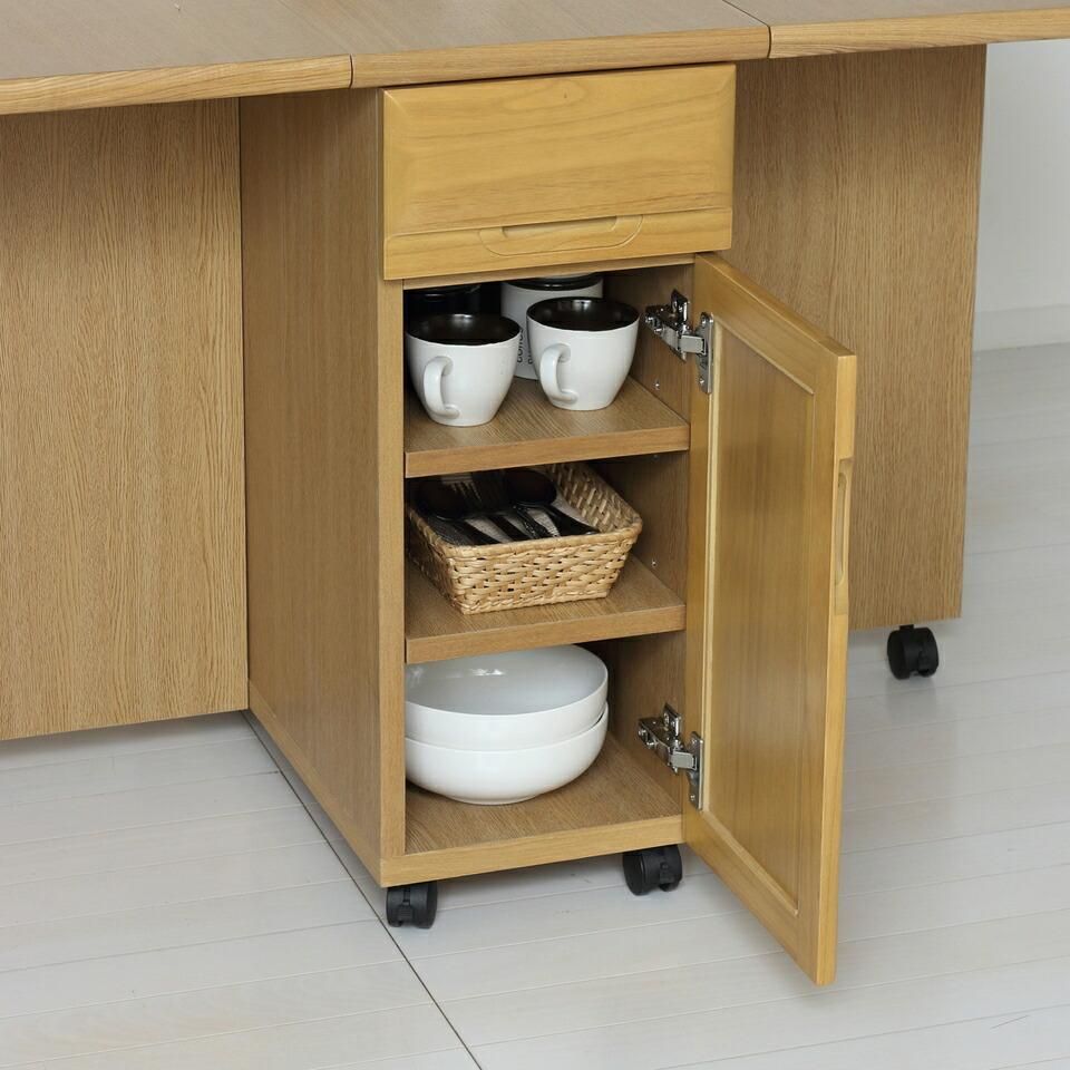 【要確認】沖縄・離島は配送不可です。配送先が不可地域の場合はご注文後キャンセル処理させていただきます。 メーカー希望小売価格はメーカーサイトに基づいて掲載しています 商品説明 テーブル・デスク・ワゴン、用途によって形を変えられる1台3役のテーブルワゴン。引出内寸(2杯)約幅18.5×D33.5×深さ8(10)cm 扉内寸(2ヶ所)約幅23.5×奥行38.5×高さ46cm 可動棚4枚(3cmピッチ3ヶ所×2) キャスター6個(ストッパー付)