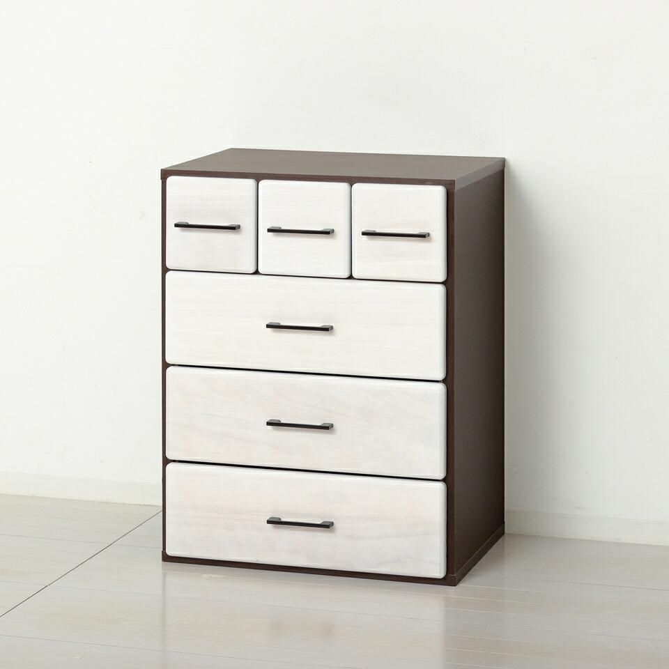 天然木自在チェスト 縦置き 横置き 引出し6杯
