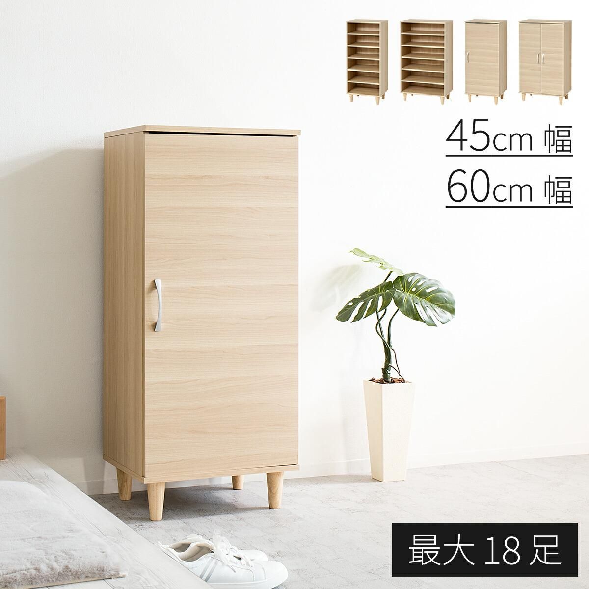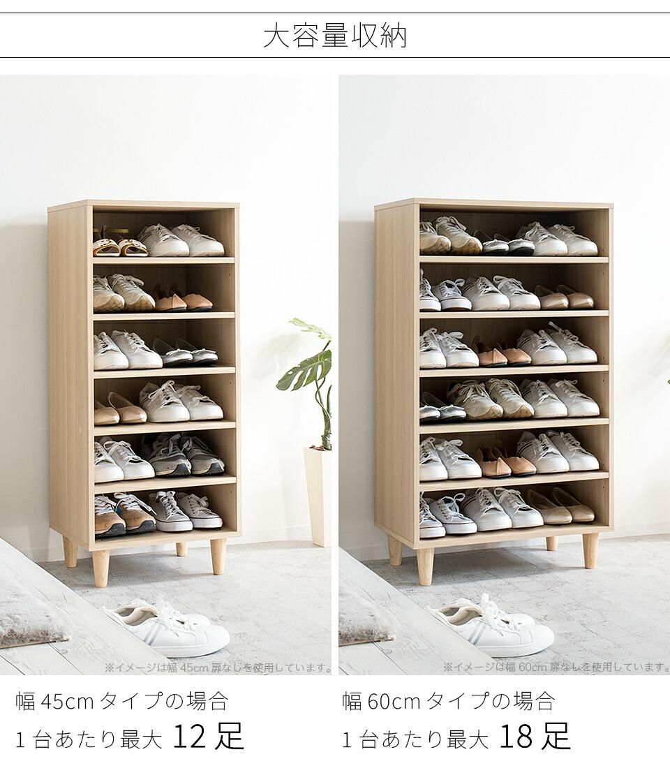 シューズボックス 幅45 幅60 最大18足 大容量 固定 可動 移動 木製 おしゃれ 湿気 木目 上下 連結・転倒防止部品付 ワンドア ツードア 取付