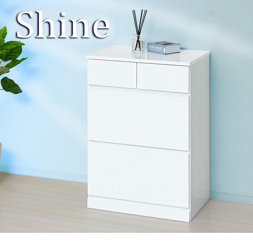 チェスト 深型 約 幅60cm 3段 ホワイト 白 木製 シャイニー 艶々ツヤ天板 衣類収納 チェスト ランドリー収納 鏡面 チェスト 書類収納 引き出し引出