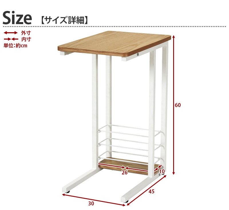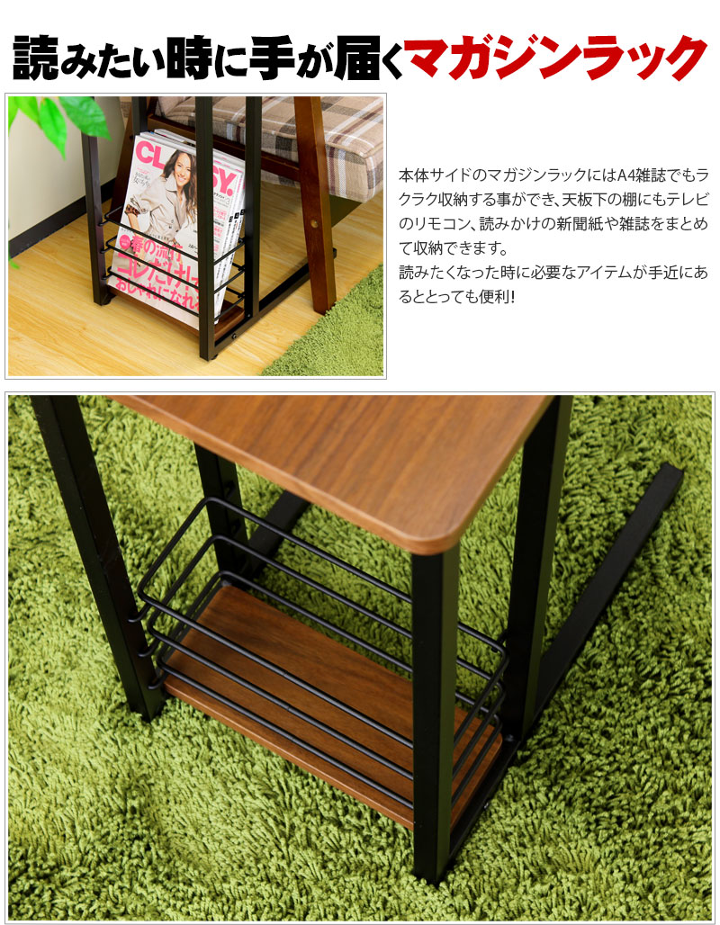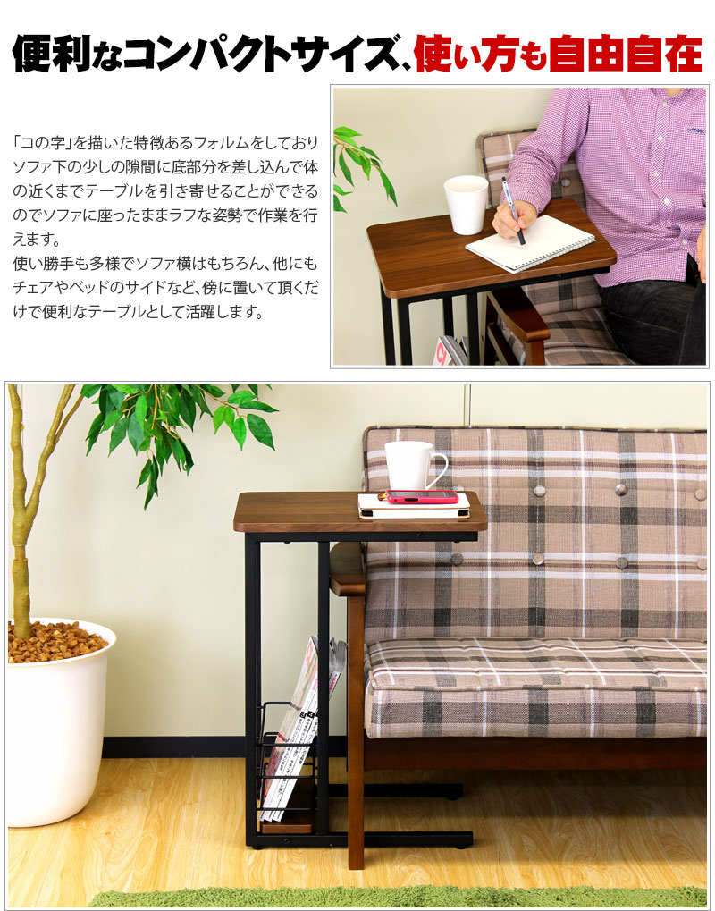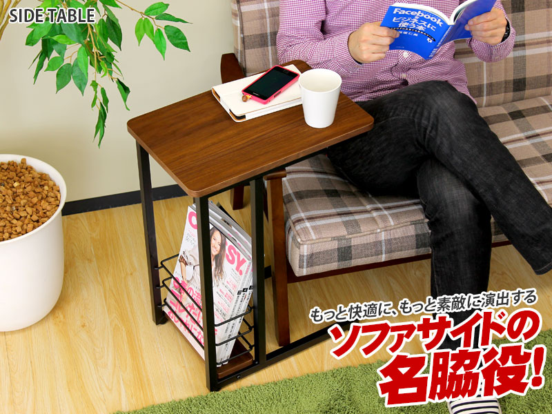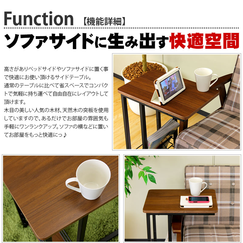高さがありベッドサイドやソファサイドに置く事で快適にお使い頂けるサイドテーブル。